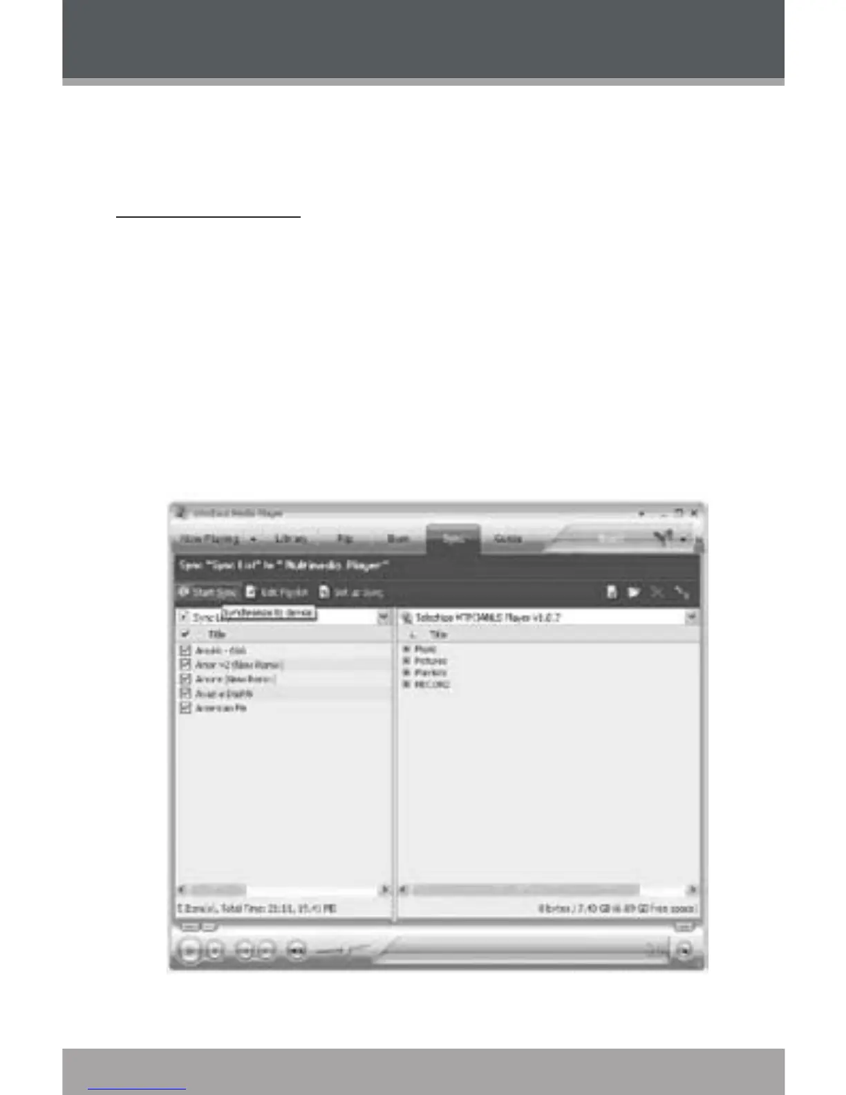 Select “Sync”. There are 2 ways to sync your les with your player: