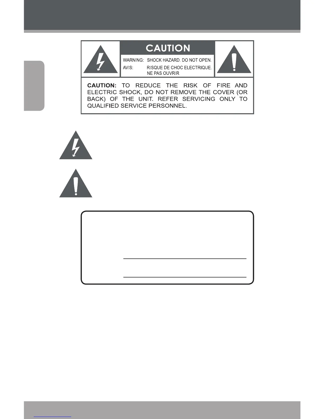 WARNING: To prevent re or shock hazard, do not expose this device to rain or moisture.