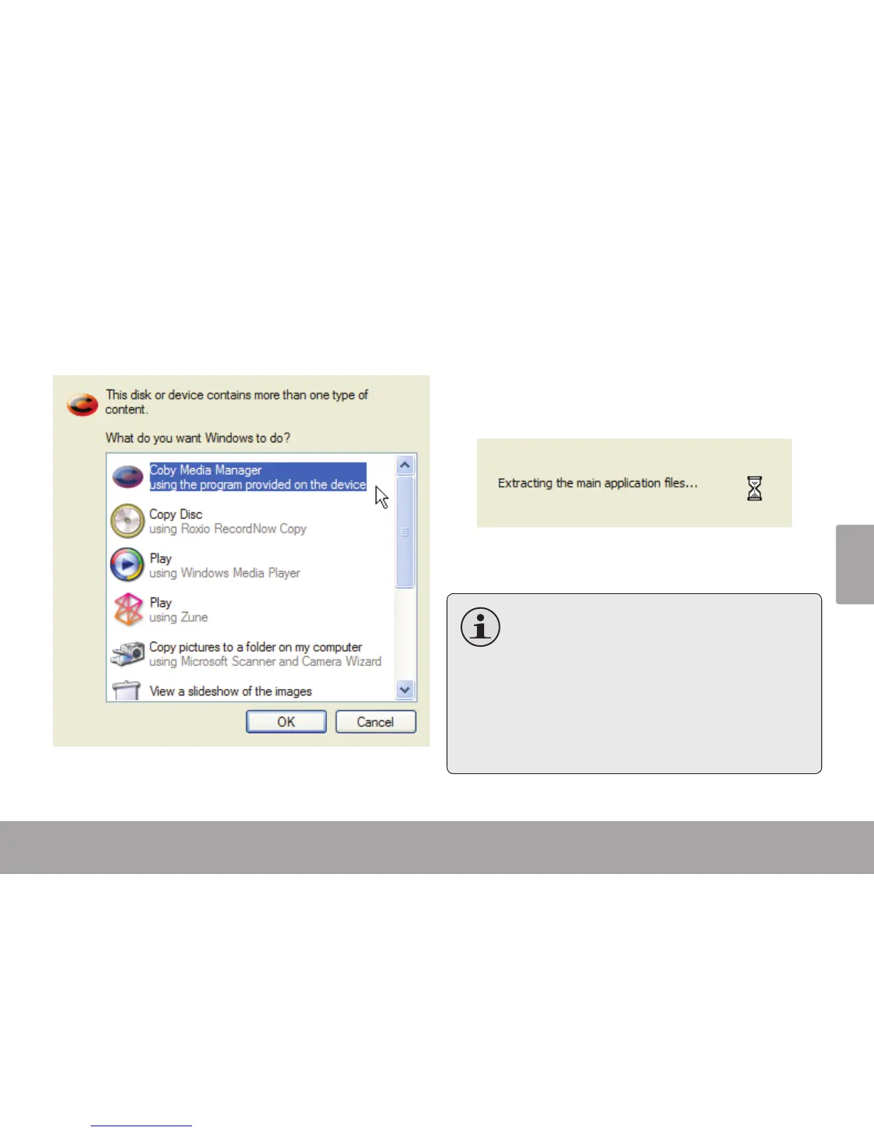 Sélectionnez “Coby Media Manager” et ensuite 2.