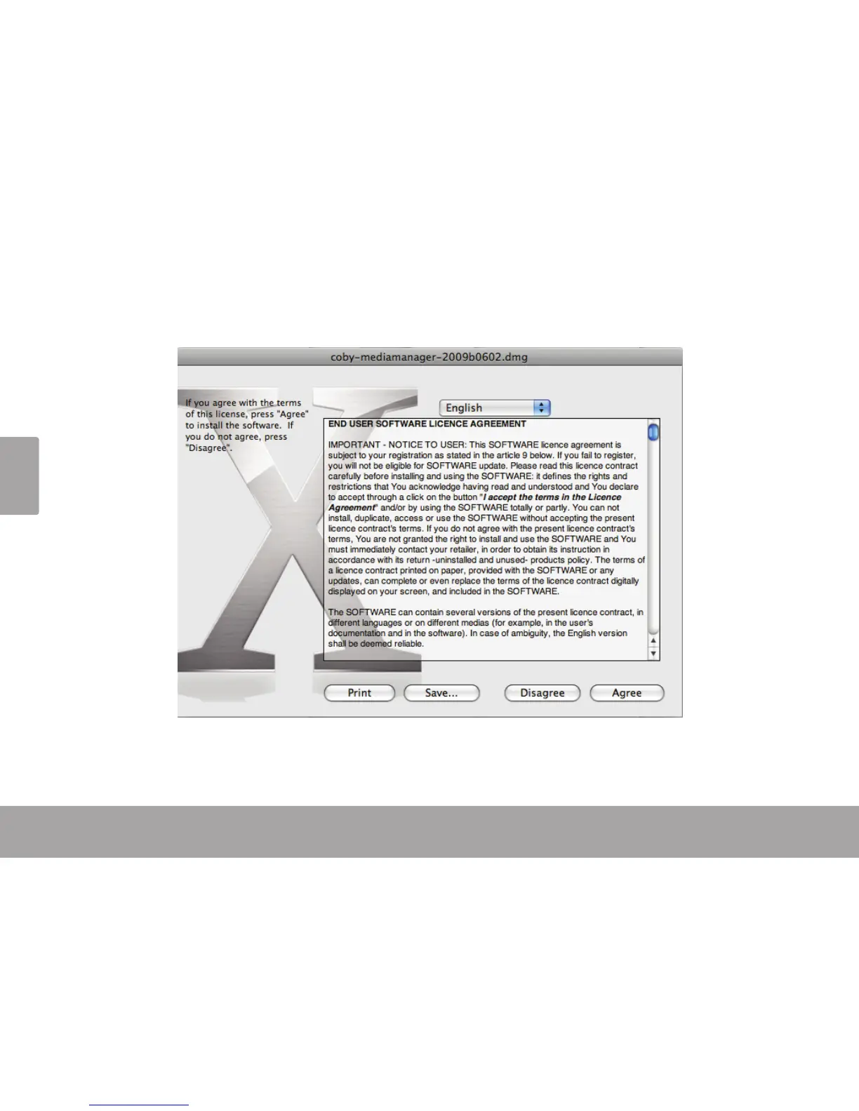 coby-mediamanager-2009b0602.dmg” para iniciar el asistente de instalación.