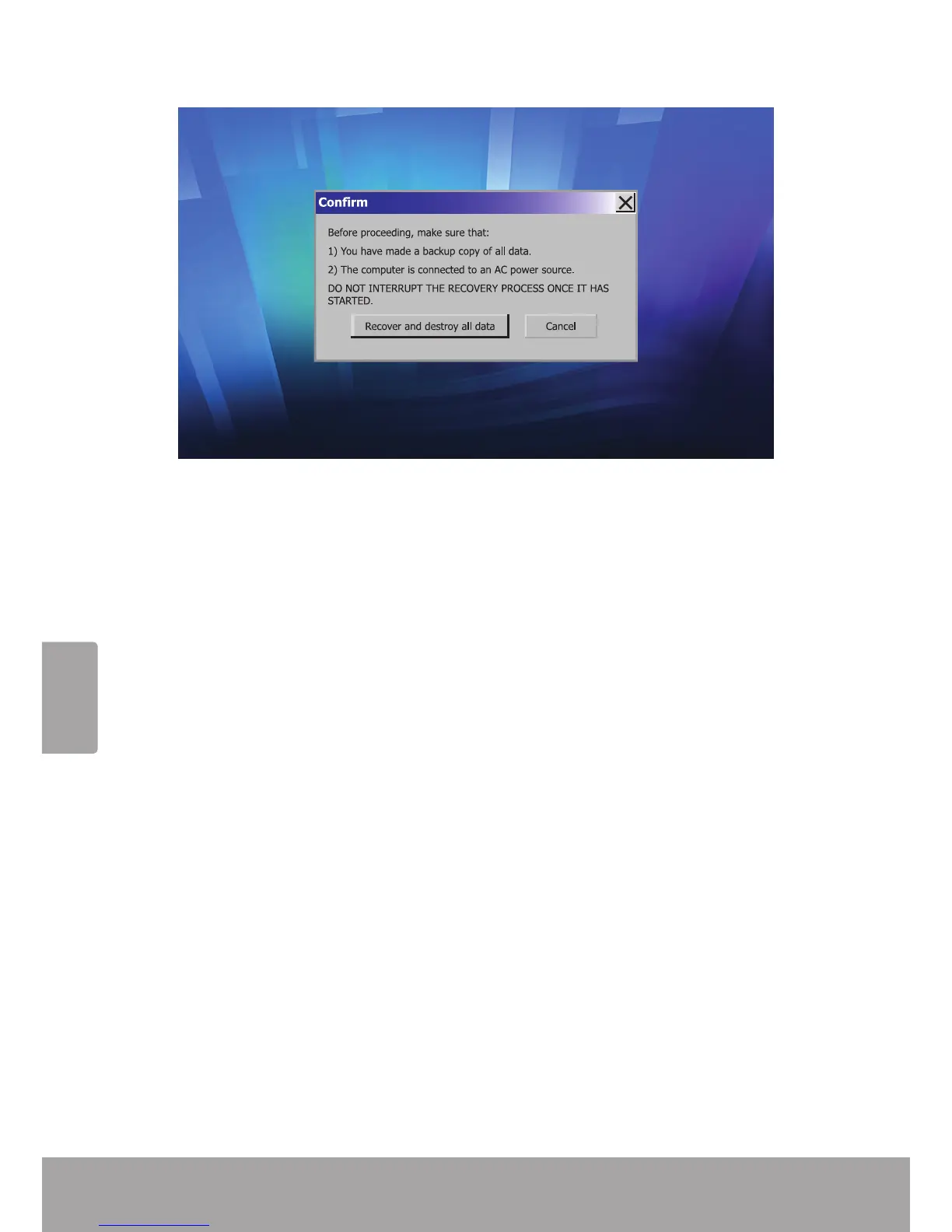 auf [Recover and destroy all data] (Werkseinstellungen wiederher-
