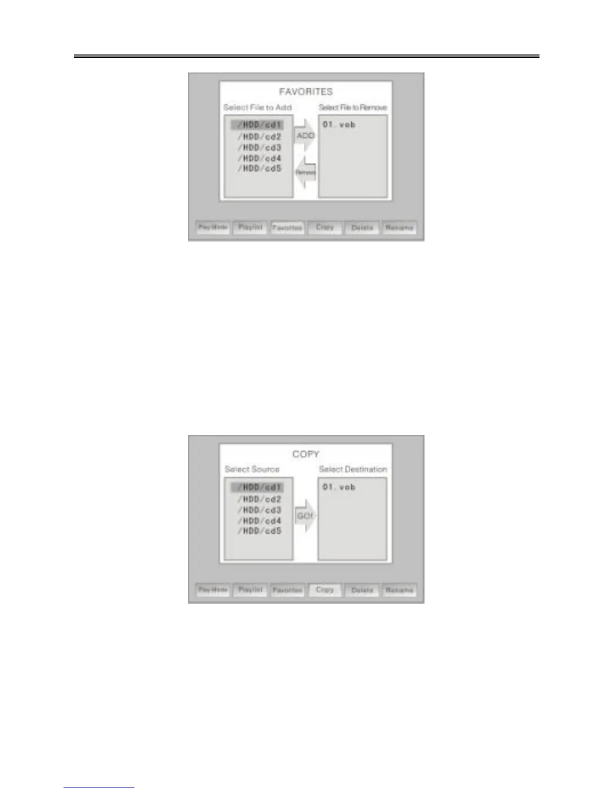 Ø Copy: Press the “SETUP” button in the video file/folder list to display a menu at