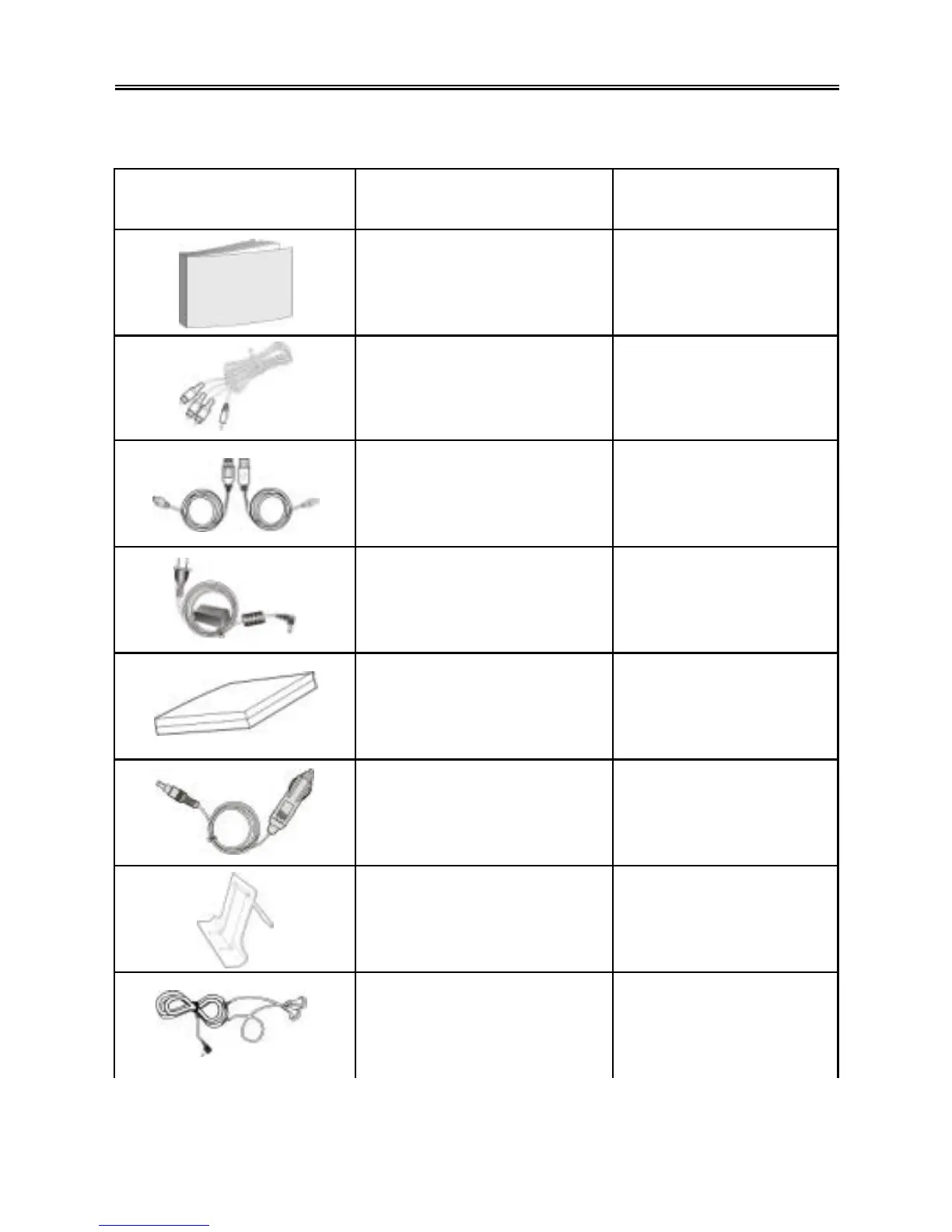 Please refer to the following table to make sure that all these items are included with