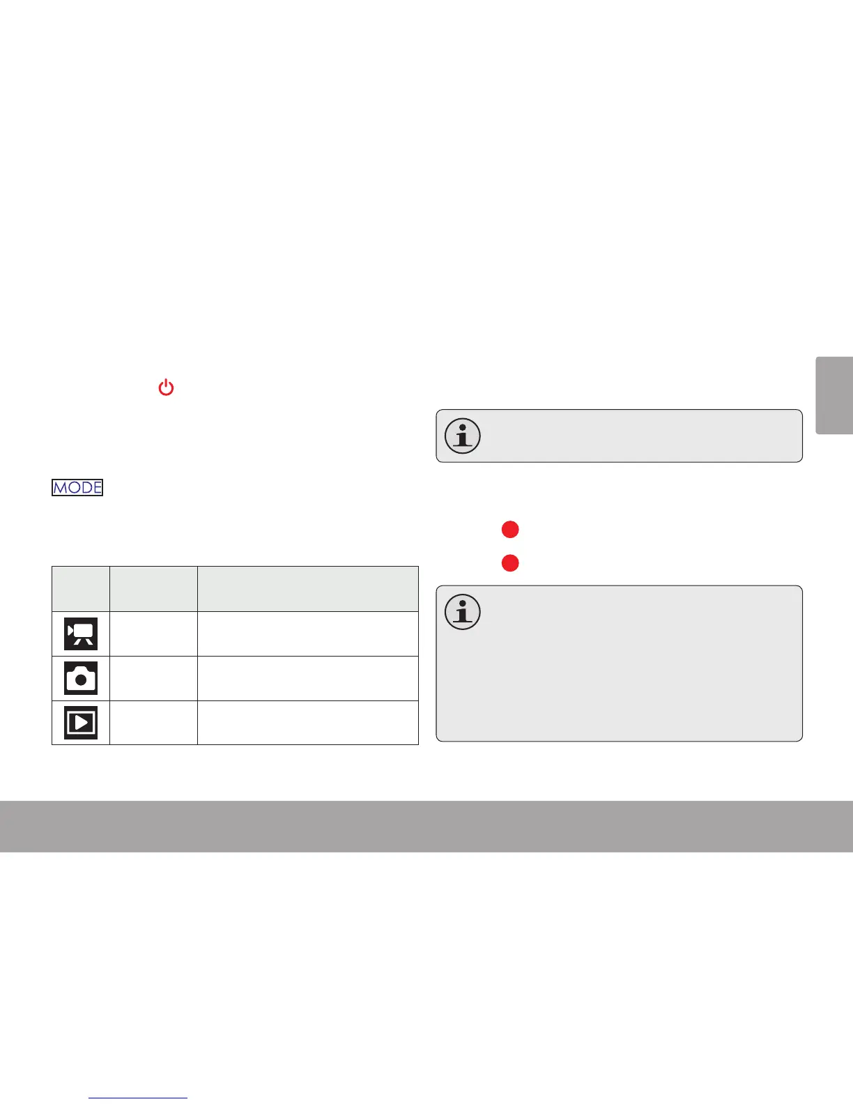 Your video camera includes three modes. Press
