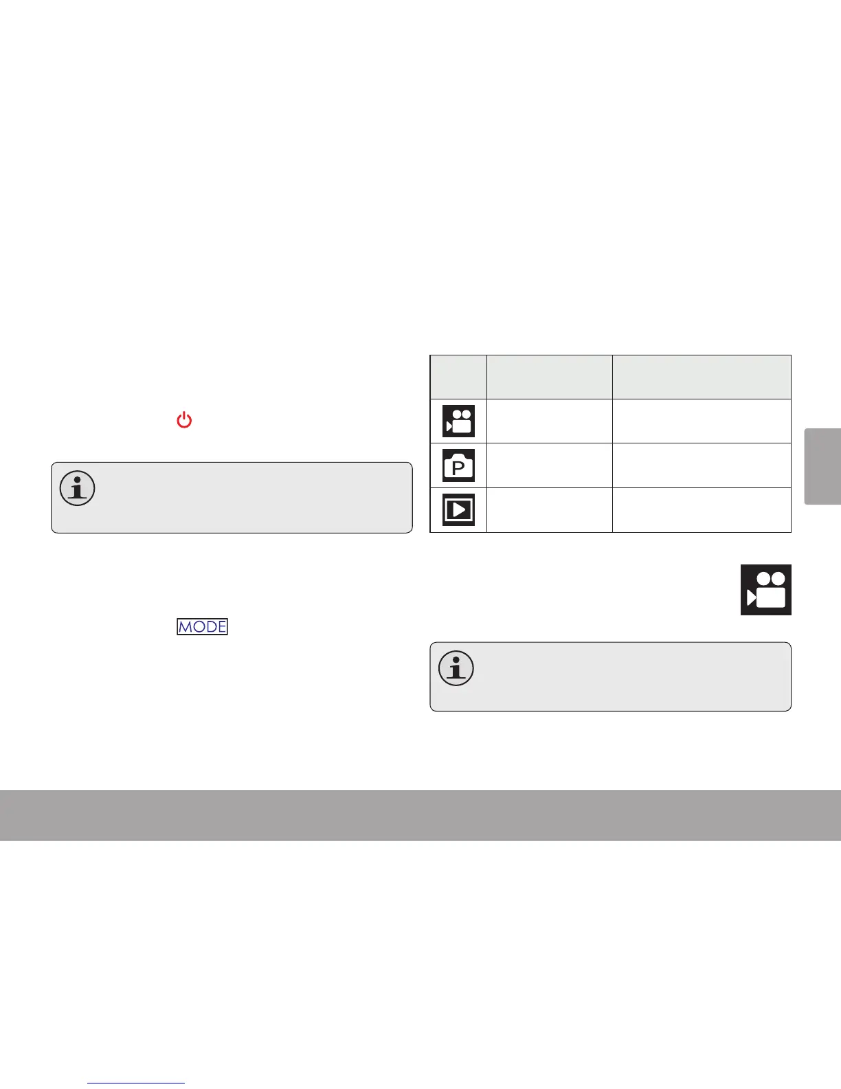 La cámara de video posee tres modos de uso.