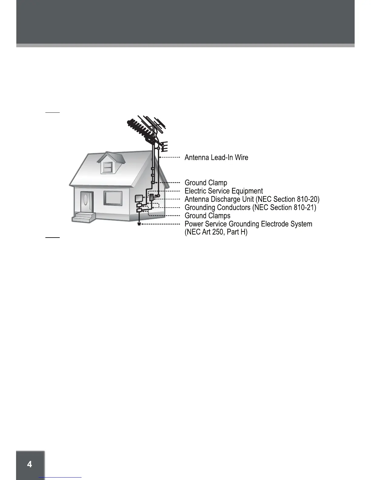 Power Lines: An outside antenna system should not be located in the vicinity of overhead