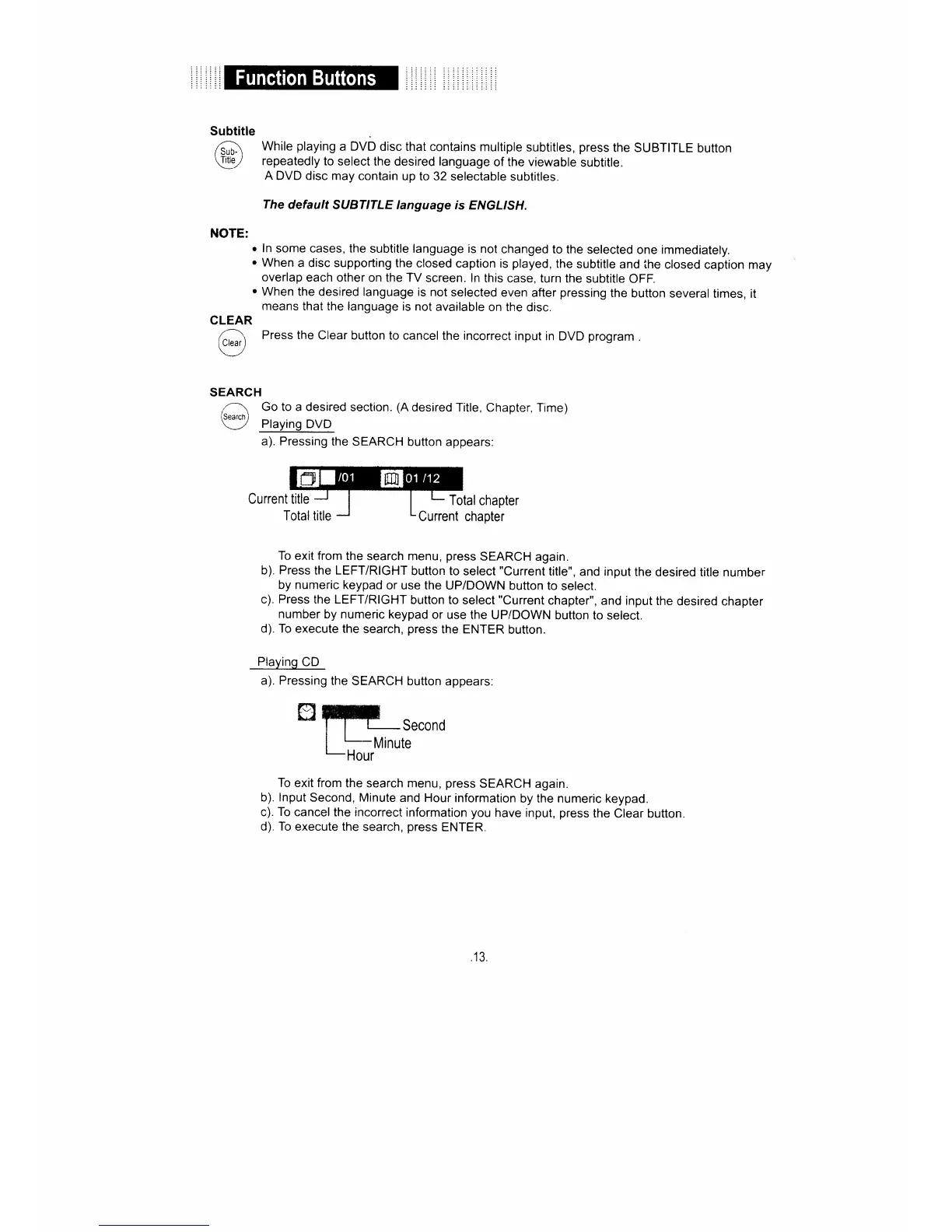 Coby TF-DVD5000 - Subtitle and Search Functions