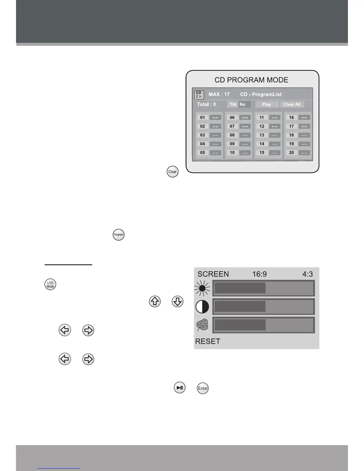When RESET is selected, press or to conrm and return all LCD