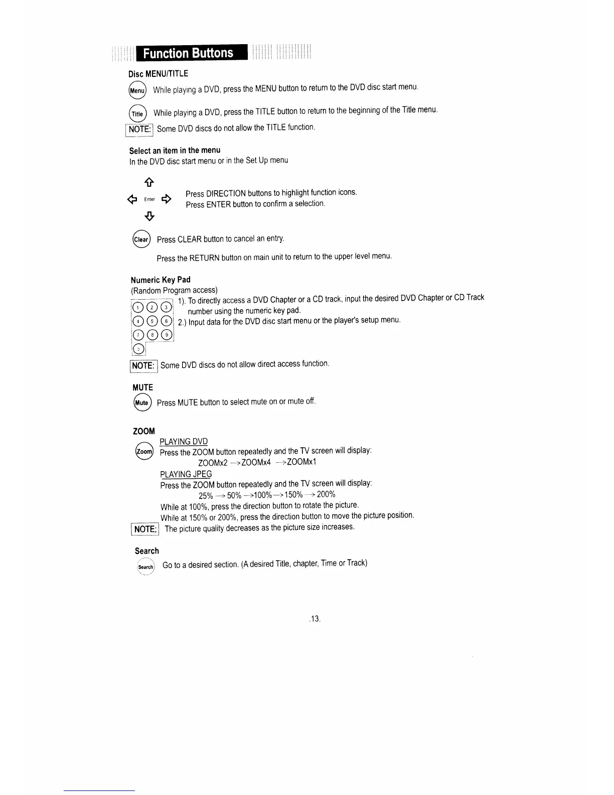 Coby TF-DVD7100 - Disc MENU;TITLE; Search