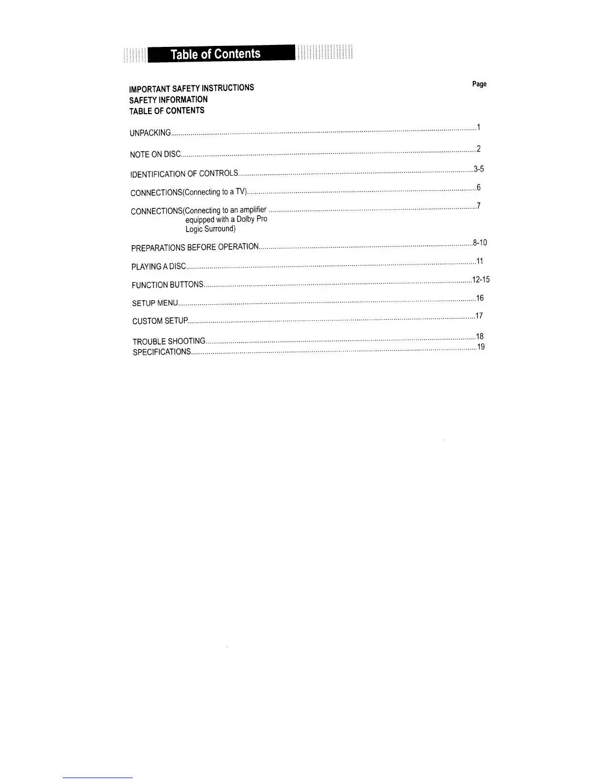 Coby TF-DVD7100 - Table of Contents