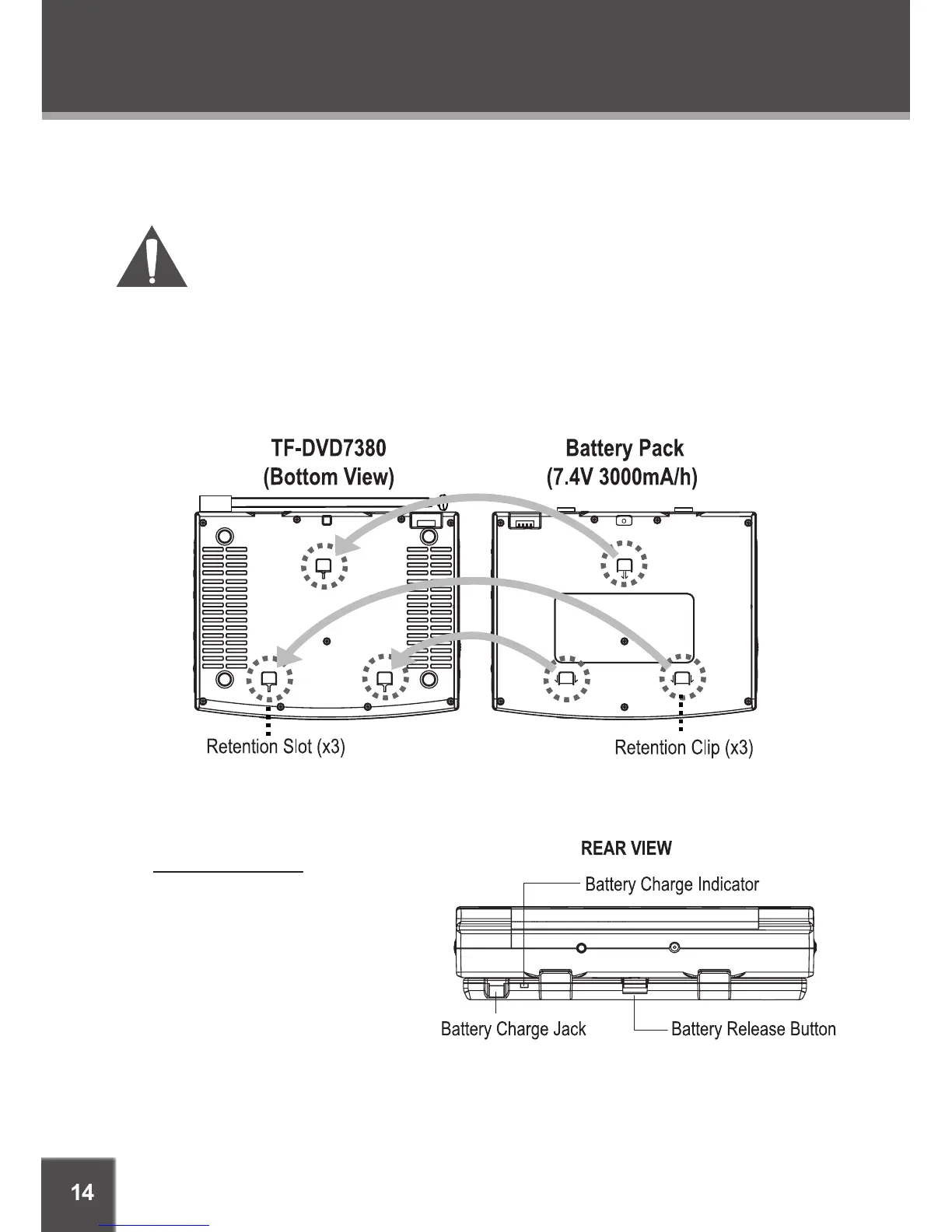 Match and insert the Retention Clips on the battery pack to the Retention Slots on the