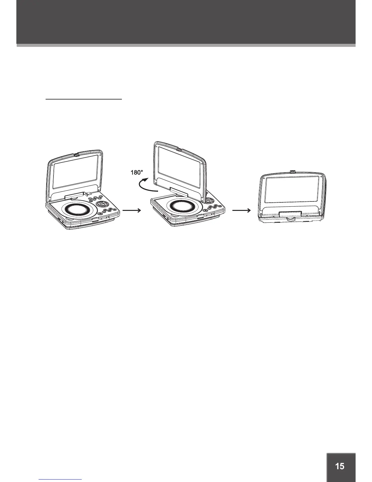 With the player open as shown in the rst position, swivel the screen clockwise a full 180º.