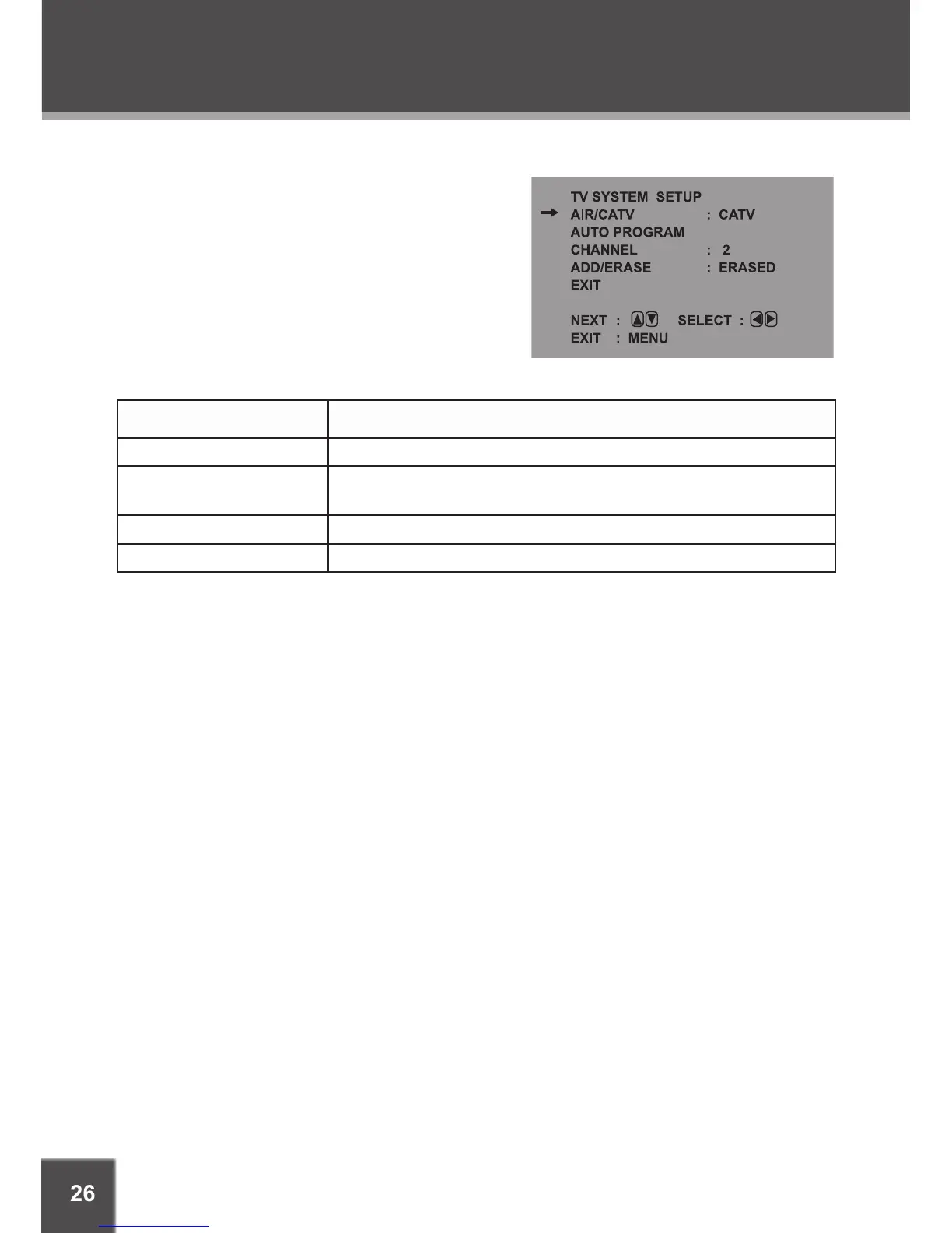Press MENU to cancel and to exit TV Setup