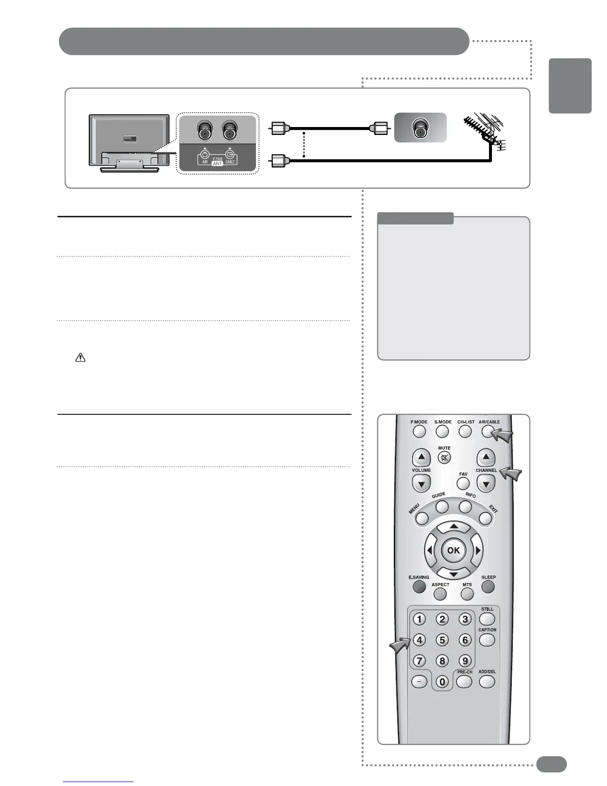 Use a coaxial cable to connect the rear panel of the TV's [AIR]