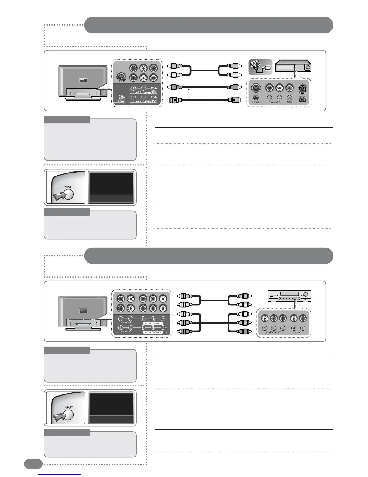 the [COMPONENT2 sound input left/right] (white/red) input terminal to the