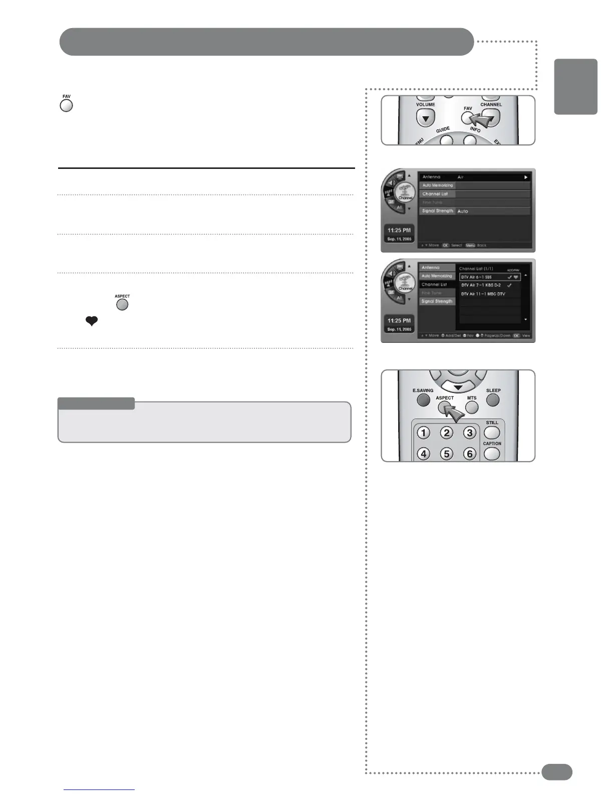 ] to move to the favorite channels, then press the
