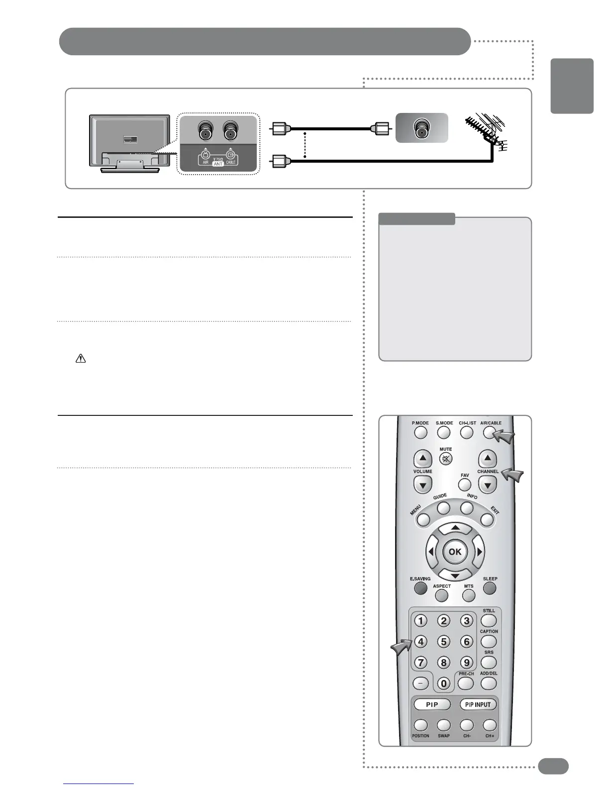 Use a coaxial cable to connect the rear panel of the TV's [AIR]