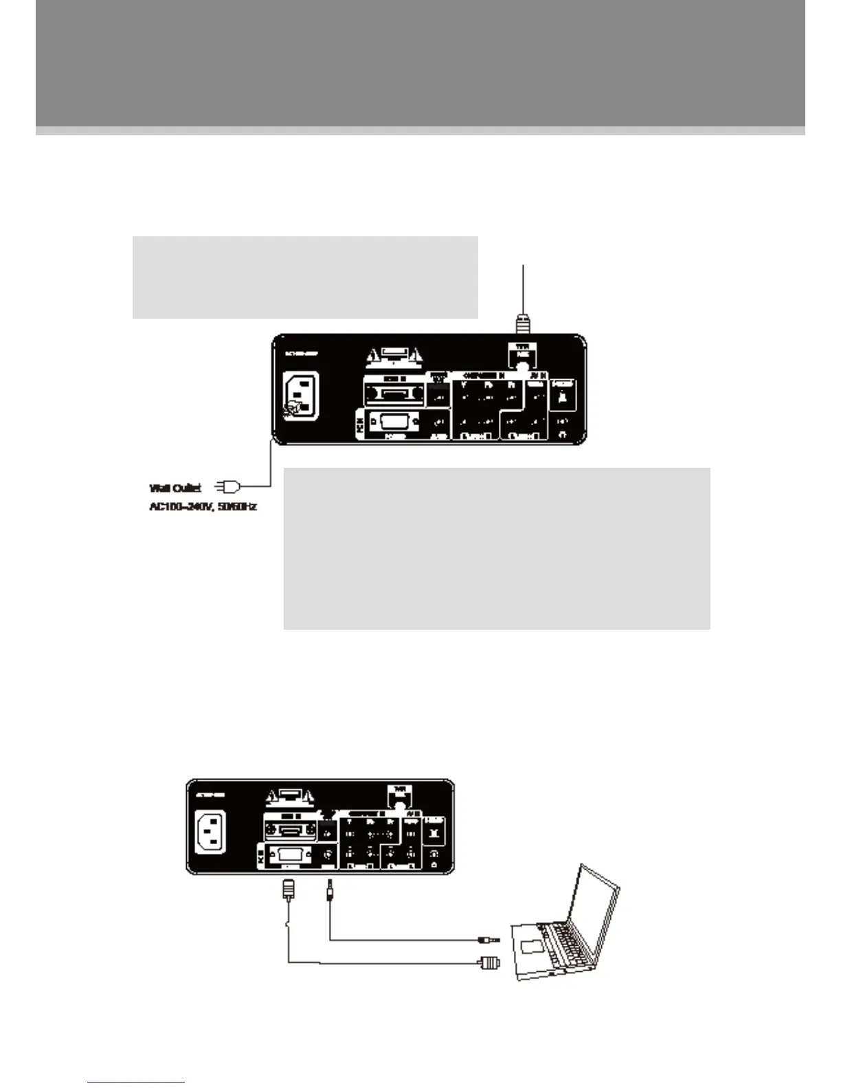 jack. When used as a computer moniter, turn off both units, connect the VGA jack and the PC Audio In jack