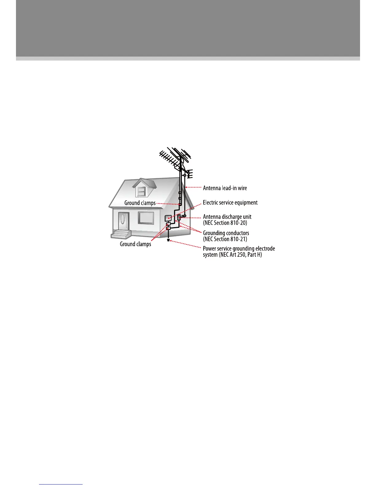 Section 810 of National Electrical Code (NEC) provides information with respect to proper grounding of the