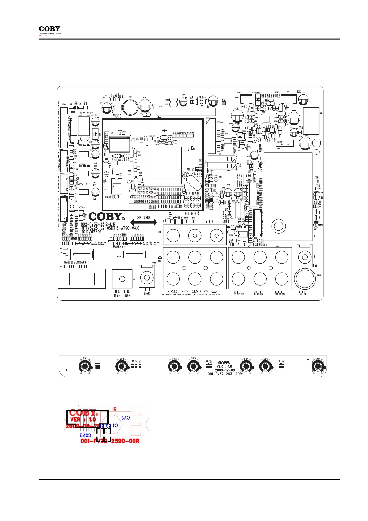 Coby TFTV3225S2 - PCB Mechanical Dimension; TV main board; Key & IR Board Component