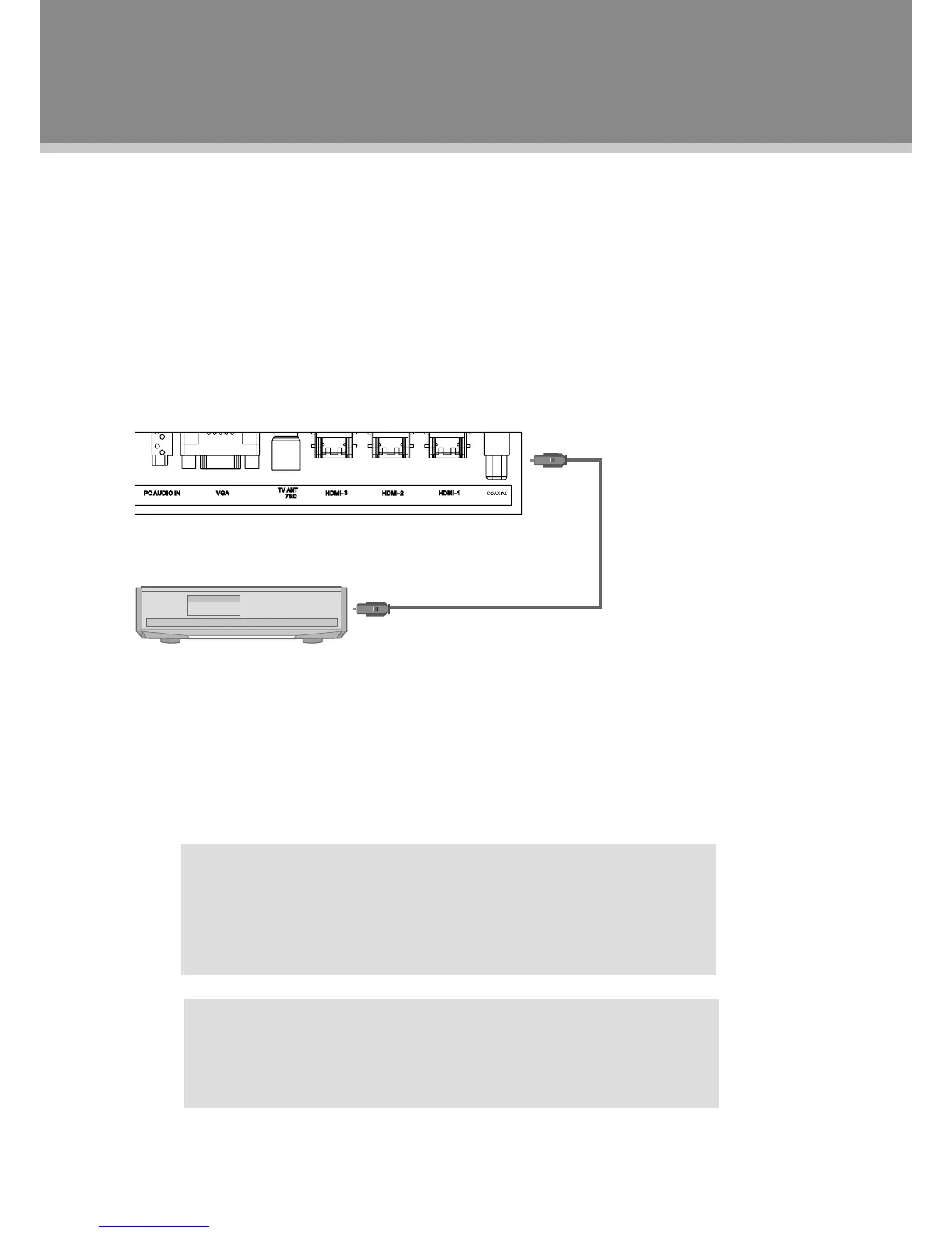 Send the TV’s audio signal to an external audio equipment via COAXIAL Output port. A 75 ohm coaxial