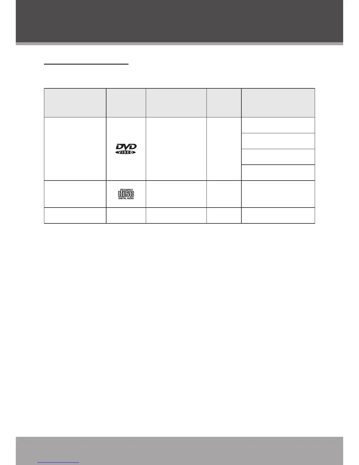 This DVD player supports playback of the following discs.