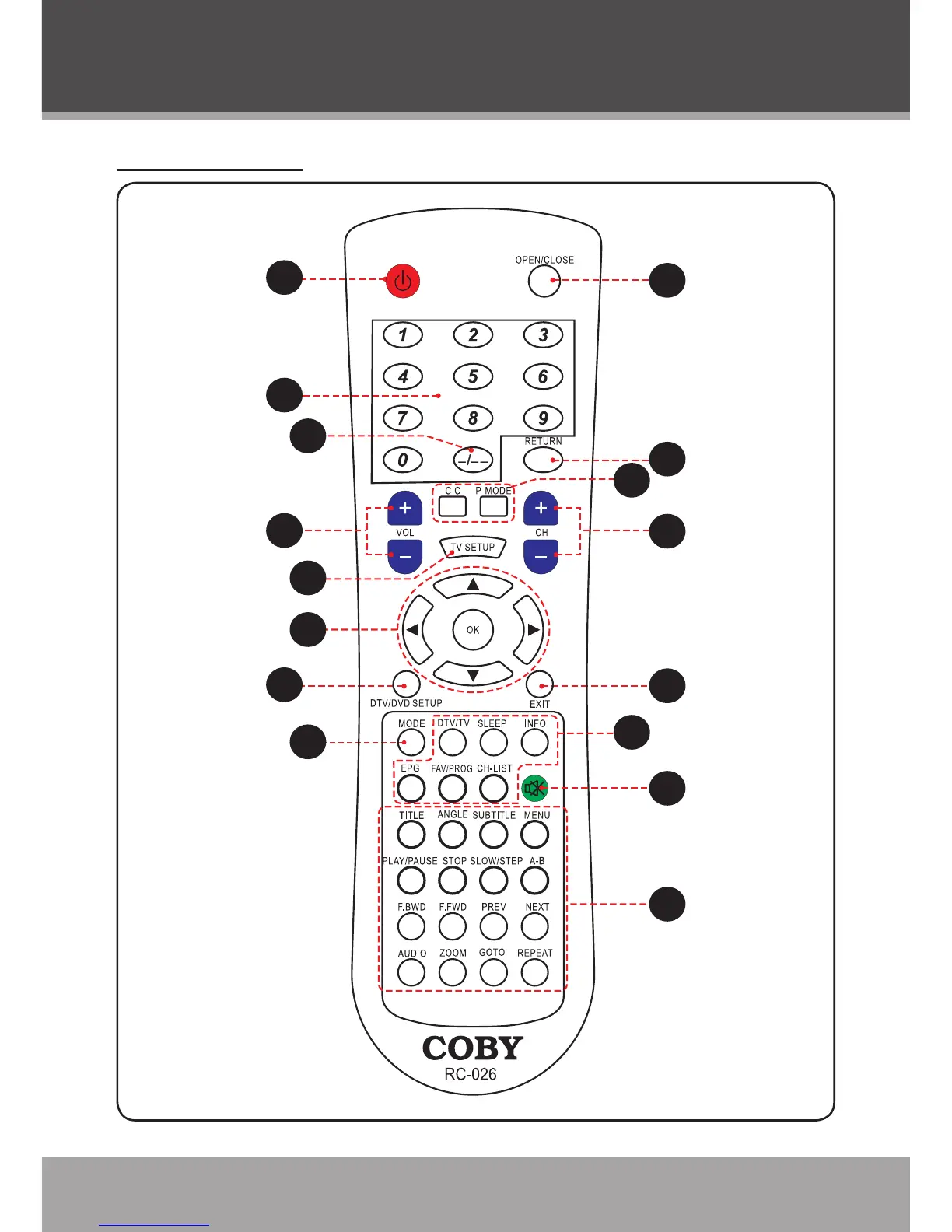 Coby TV-DVD2090 - Remote Control Layout and Operation