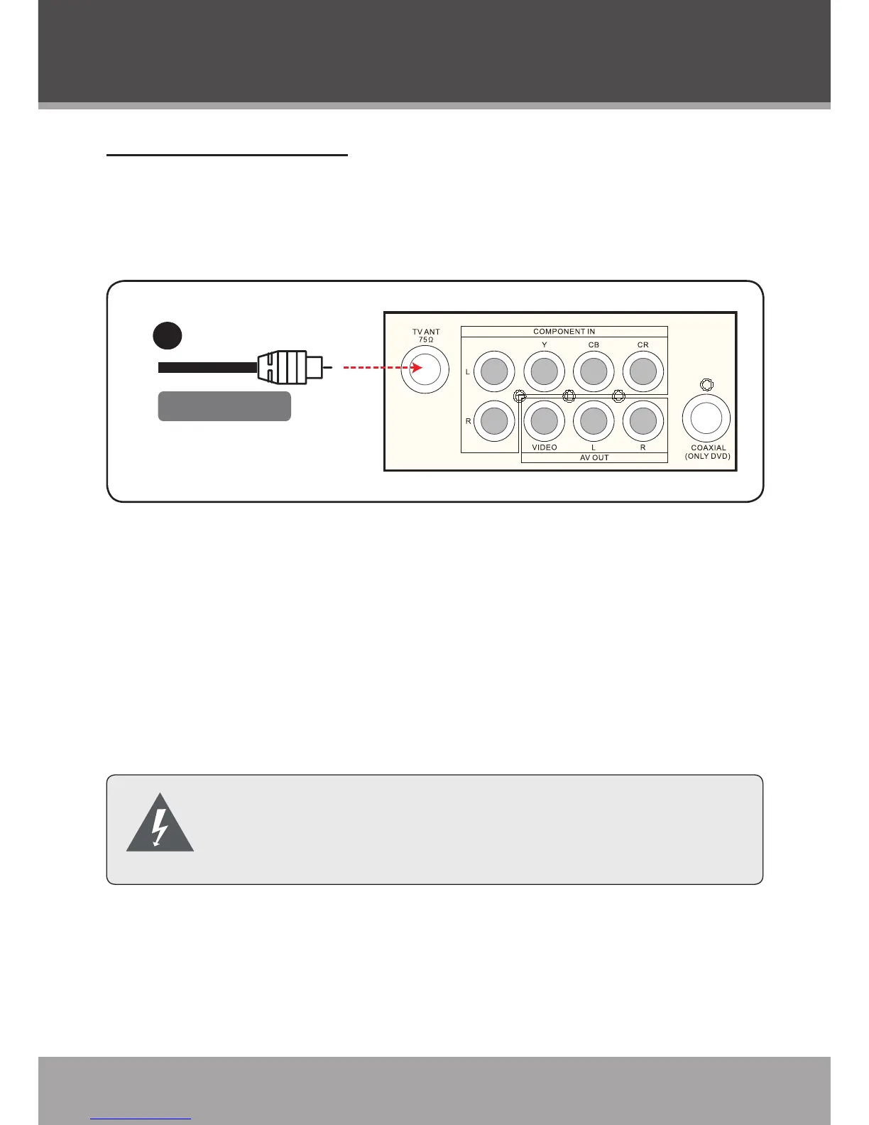 Connect the cable line (75Ω coaxial cable) to the TV An-