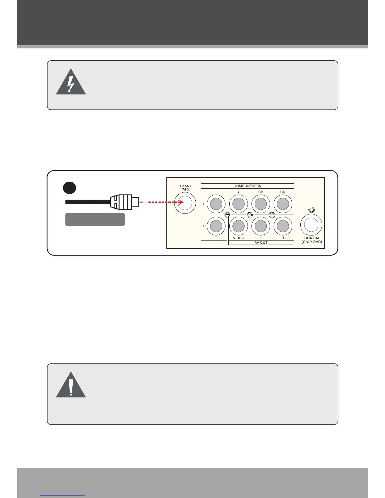 Connect the antenna line (75Ω coaxial cable) to the TV