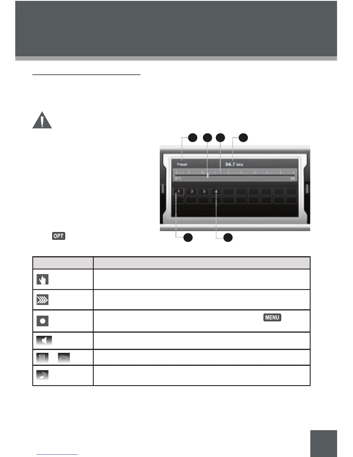 Toggle between Preset or Scan (manual) tuning modes. (The scan