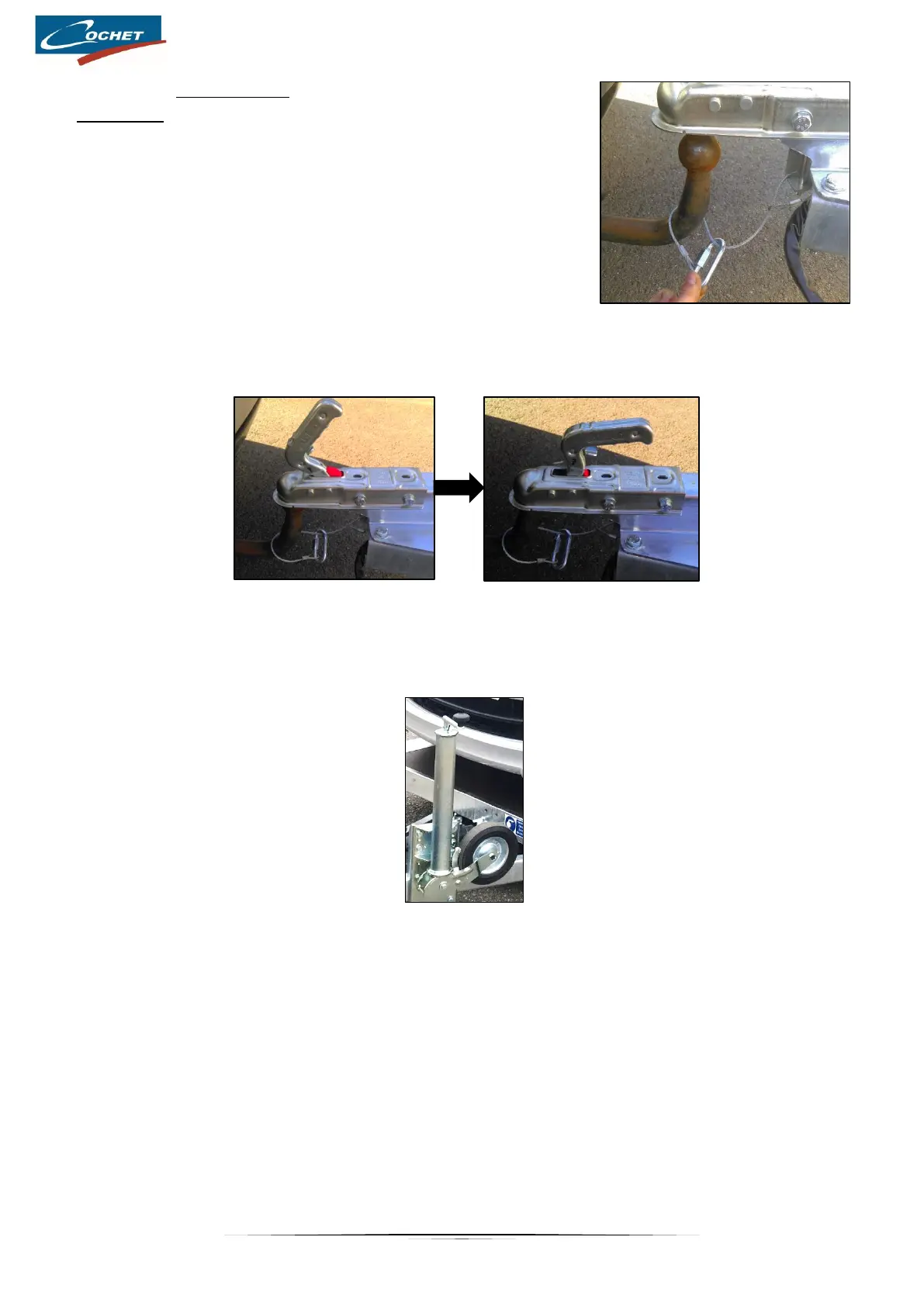 the hitch works. For braked trailers, attach the anti-rupture