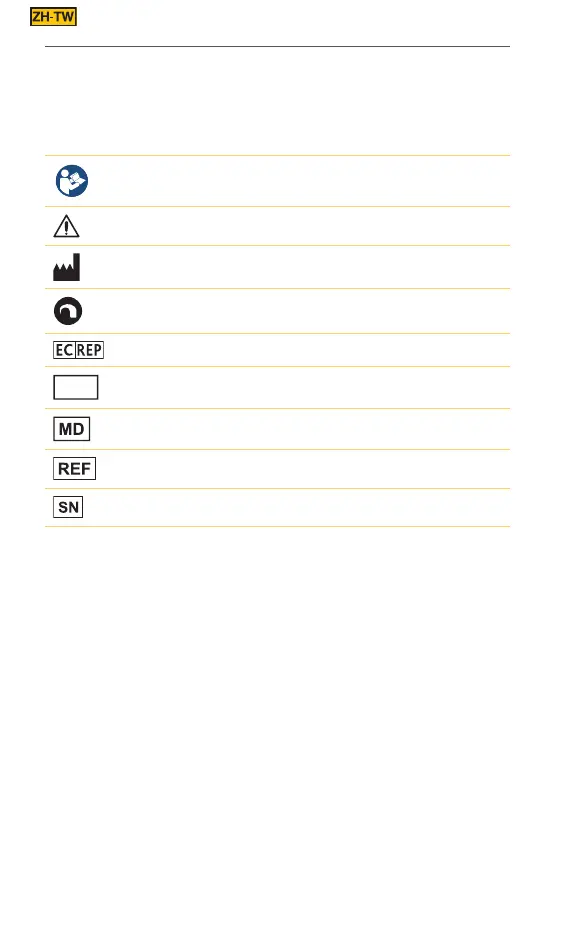 下列符號可能會出現在您的聲音處理器或附件和/或包裝上: