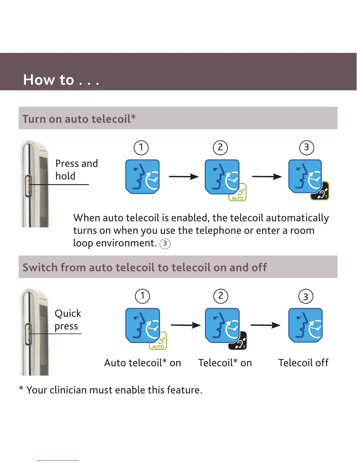Auto telecoil* on Telecoil* on Telecoil off