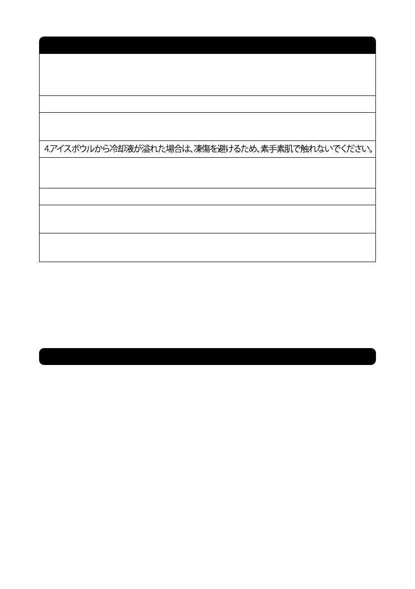 5.冷却液があふれないように、アイスボウルをぶつけたり落としたりしないでください。