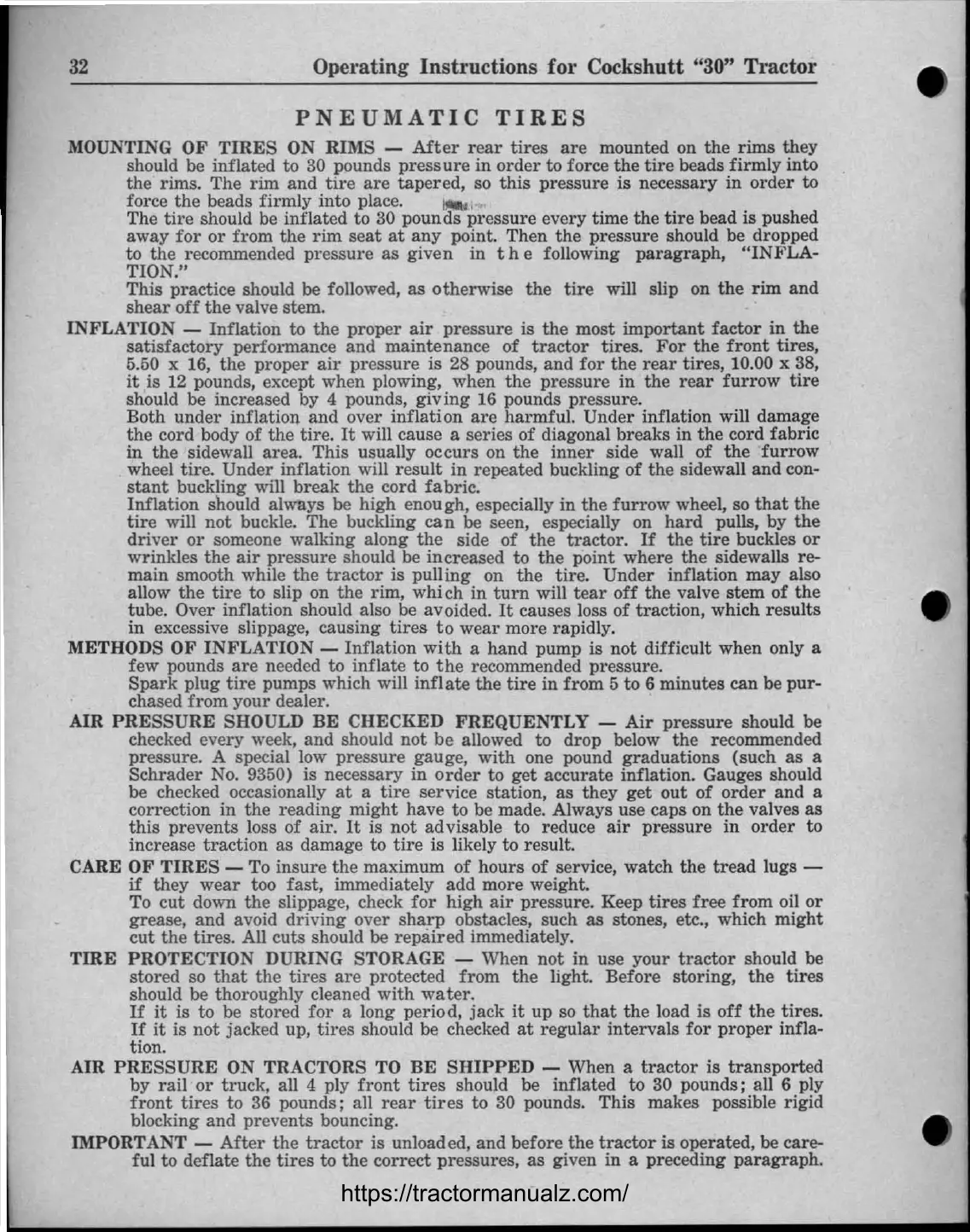 should be inflated to 30 pounds pressure every time the tire bead is pushed