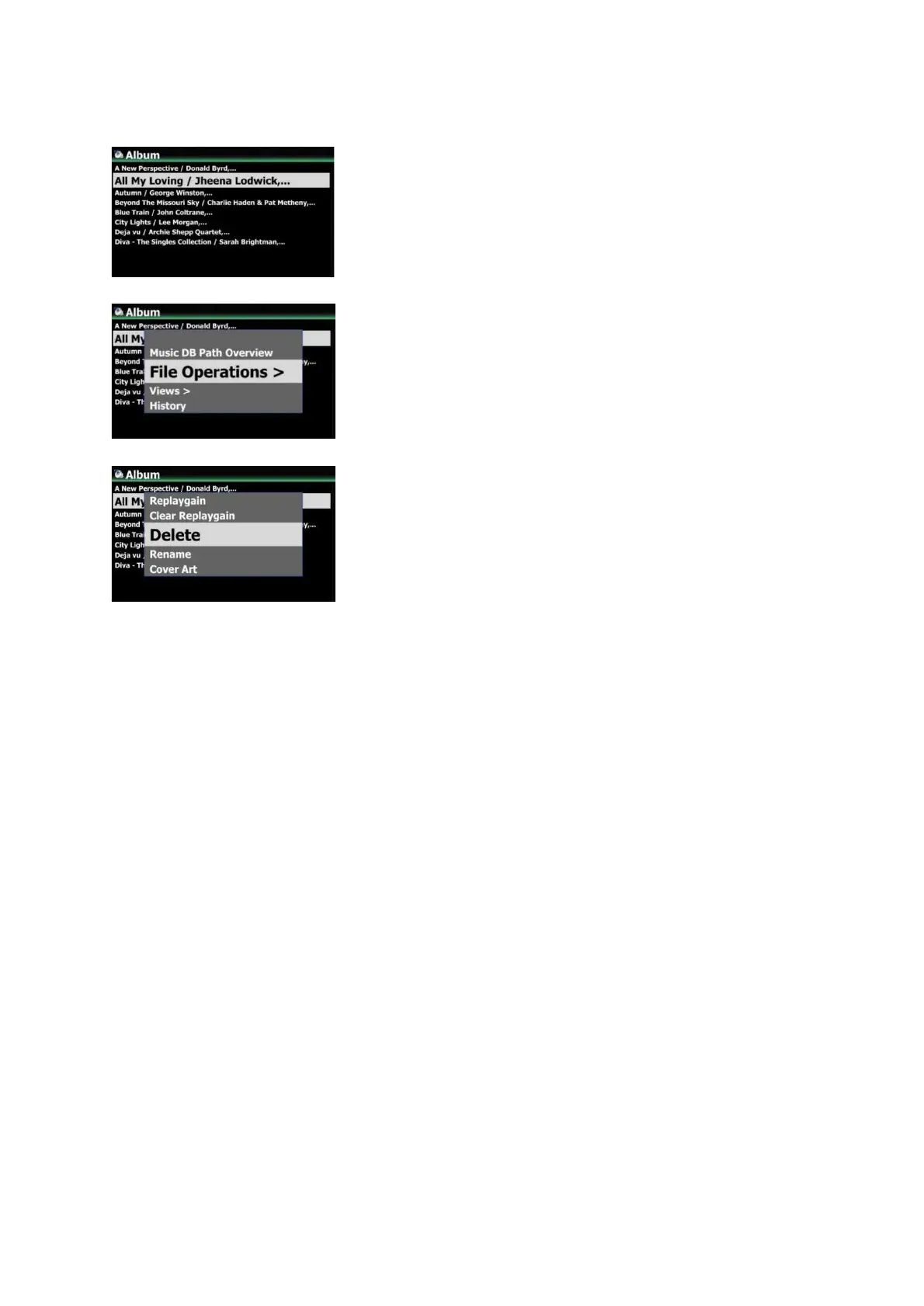 ① Go into Music DB and place the cursor on the album or