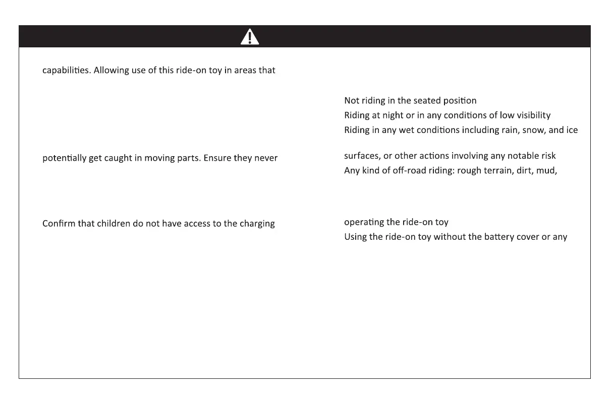 • Any kind of stunt riding: jumps, ramps, stairs, hills, sloped