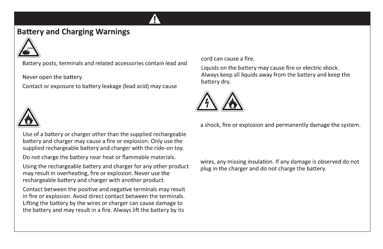The following safety hazards may result in serious injury or death to the user of the ride-on: