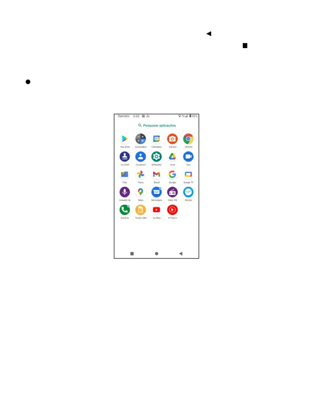 o centro da barra de navegação para regressar ao ecrã principal. A janela da