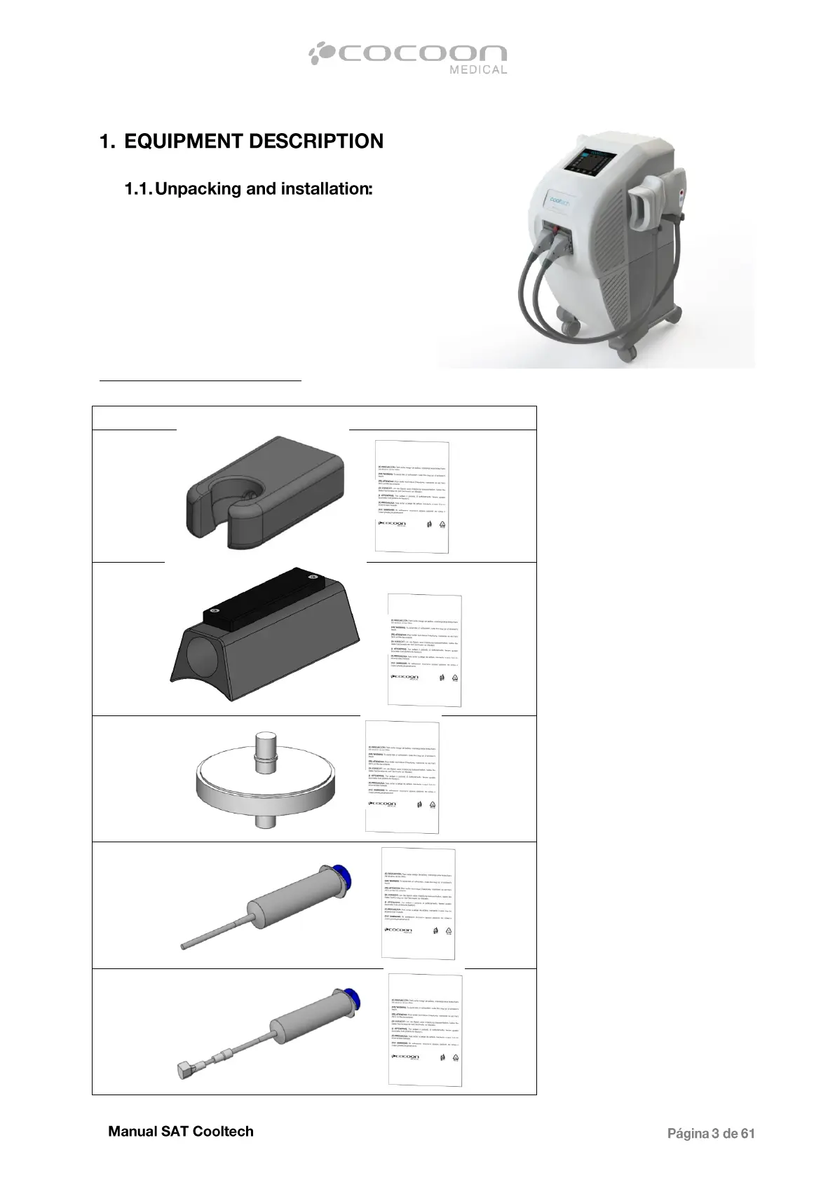 Cocoon Cooltech - Equipment Description; 1.1. Unpacking and Installation