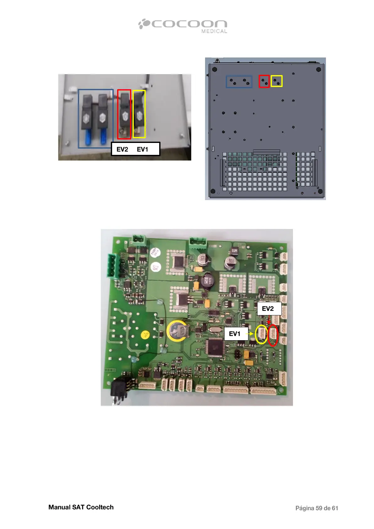 Cocoon Cooltech - Solenoid Valves on the Base; Electro-Valves Mounting Screws; EV1 and EV2 Connectors