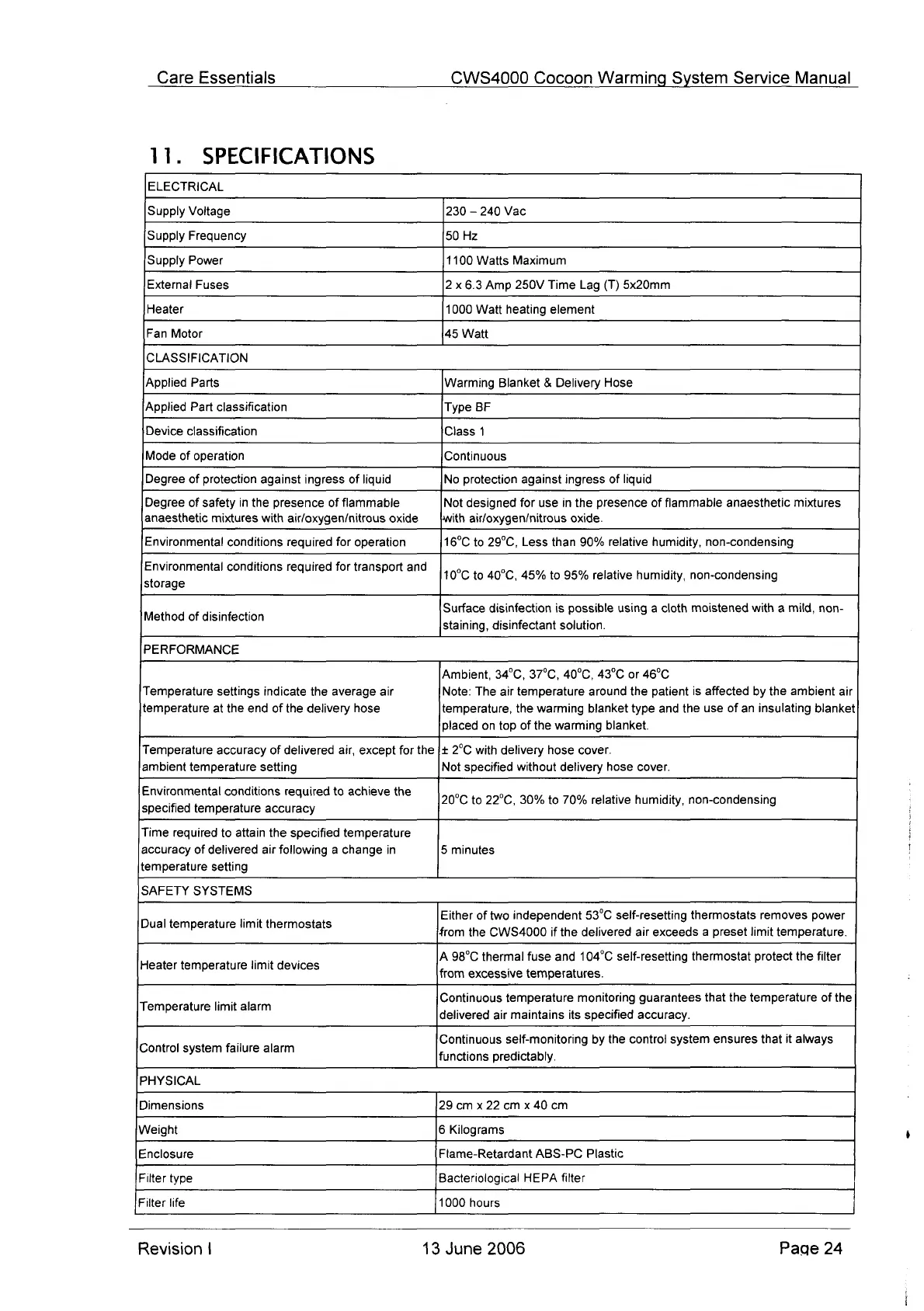 Cocoon CWS 4000 - Specifications