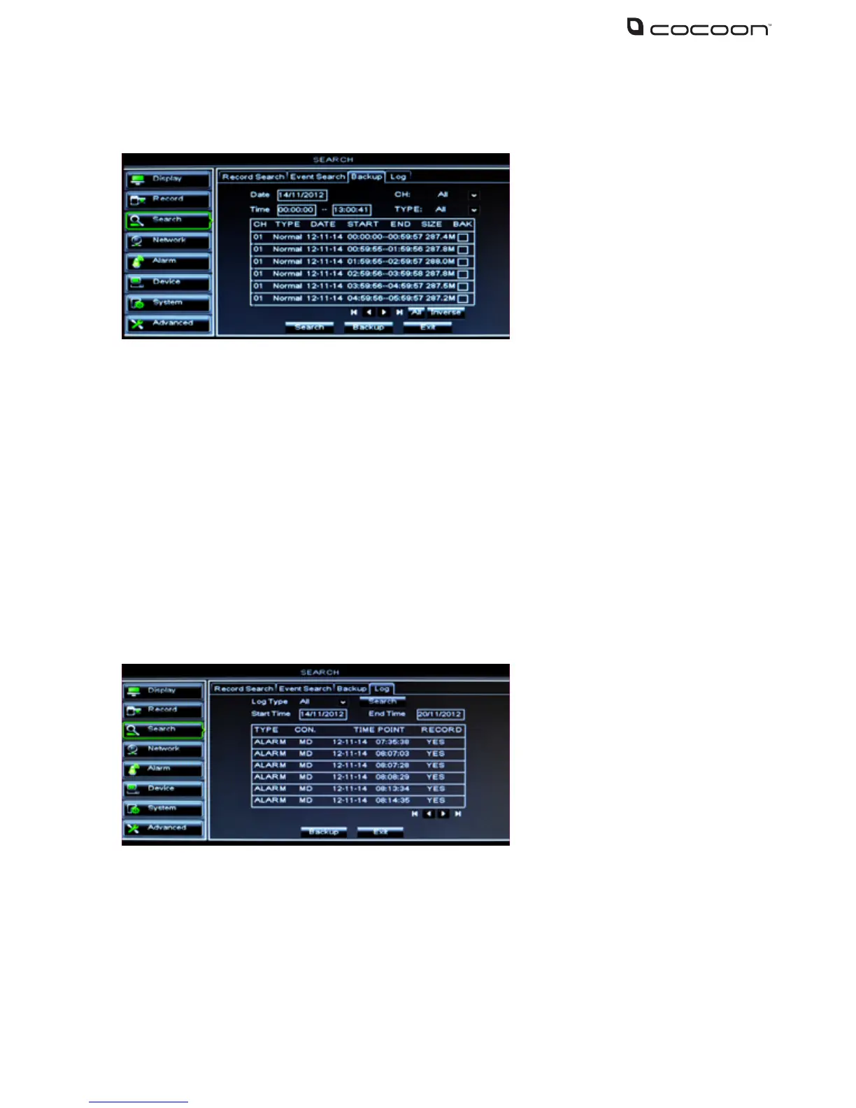 If you know the exact date, time and channel you would like to backup, use the Backup feature,