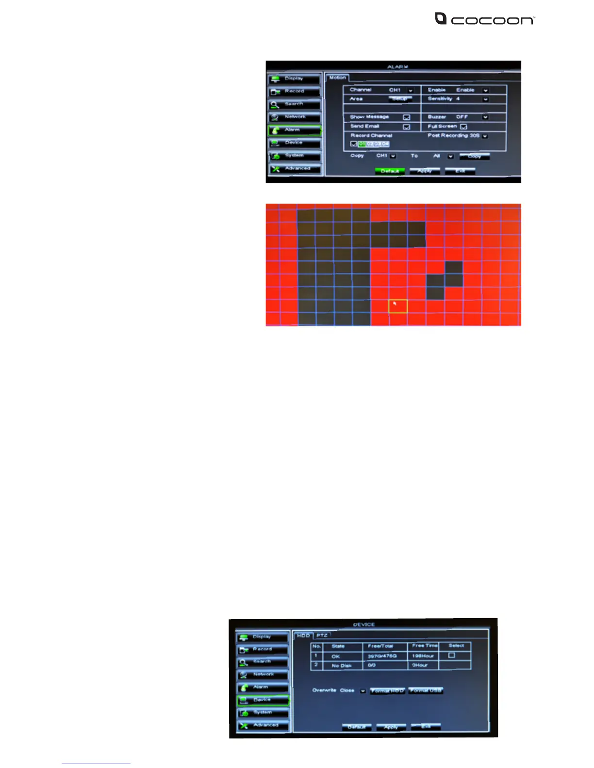 • Record Channel: When motion is detected, the selected channel(s) will start recording