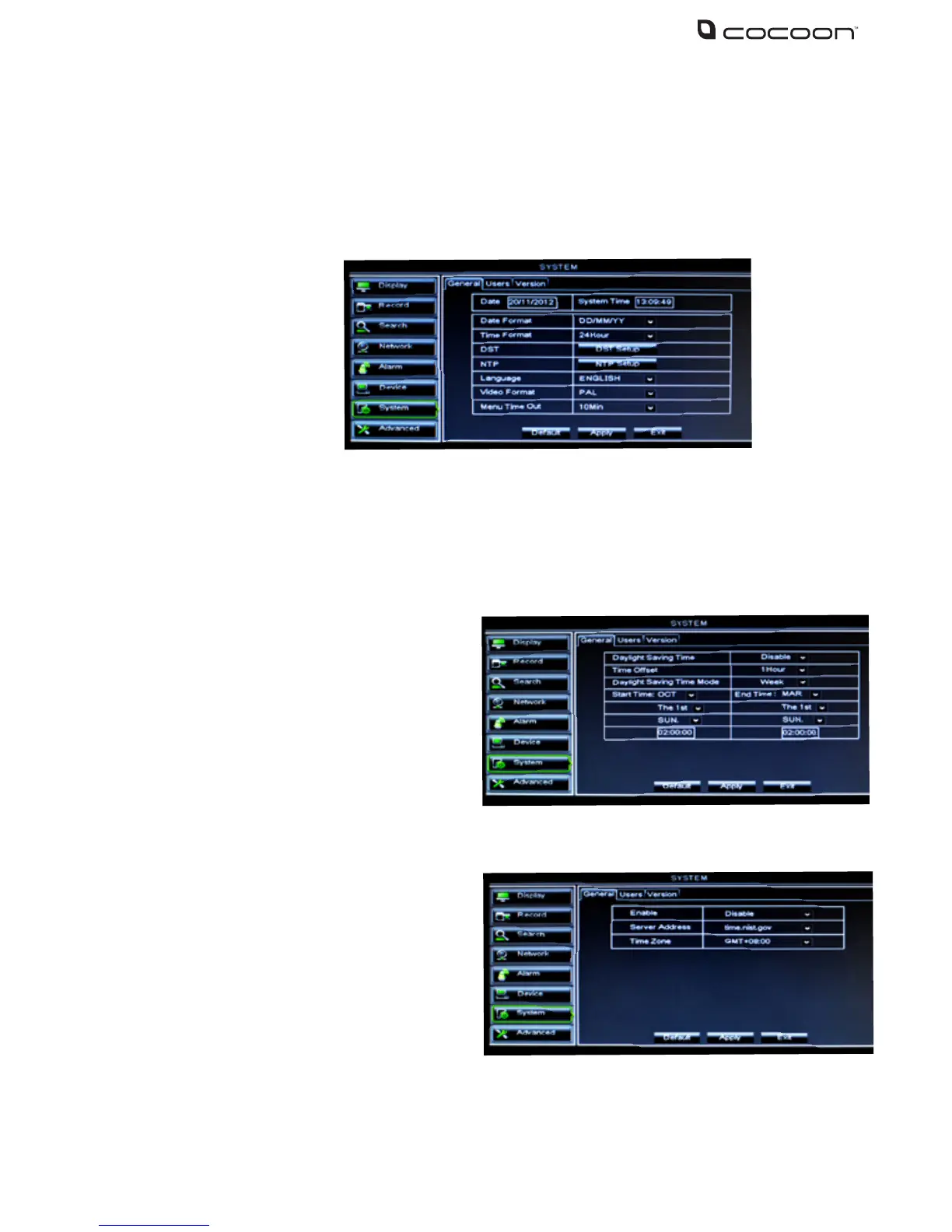 DST: See next section for DST (Day Light Saving) settings