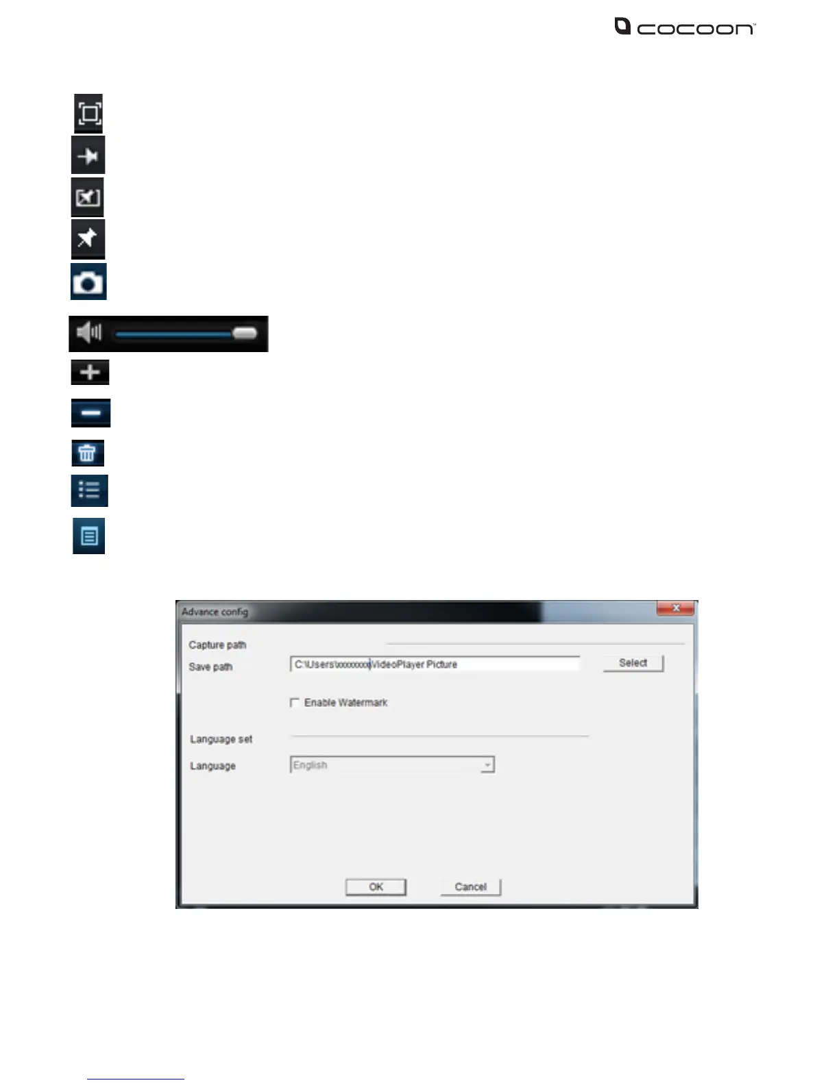 Snapshot button: click the icon to capture the live image and save the captured one to