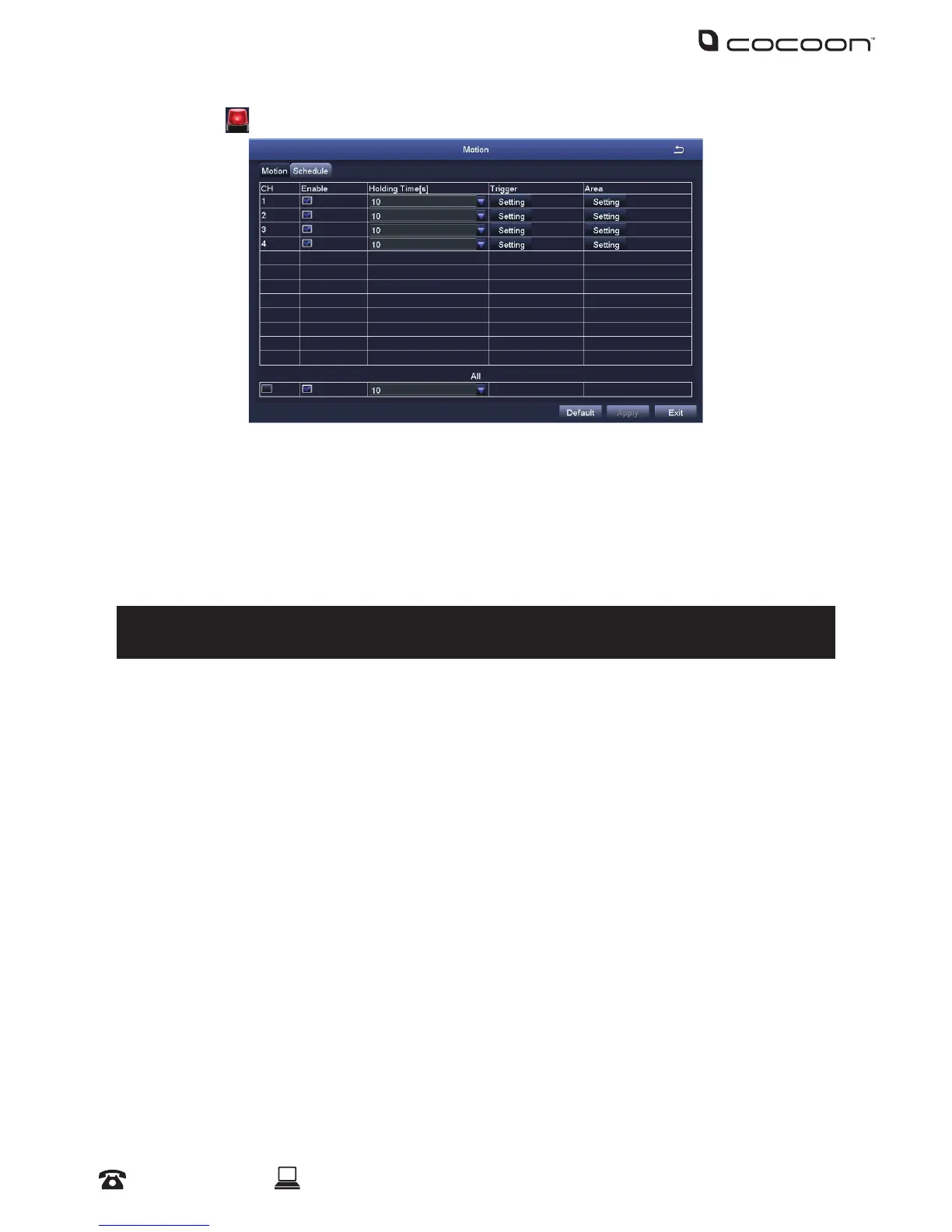 • Schedule: Linked to ‘Motion Record’ from the Schedule submenu. See 4.2.4 for details about