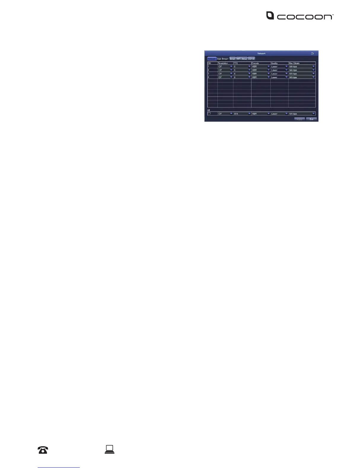 • Max Bitrate: Set the maximum bitrate that each channel will transmit
