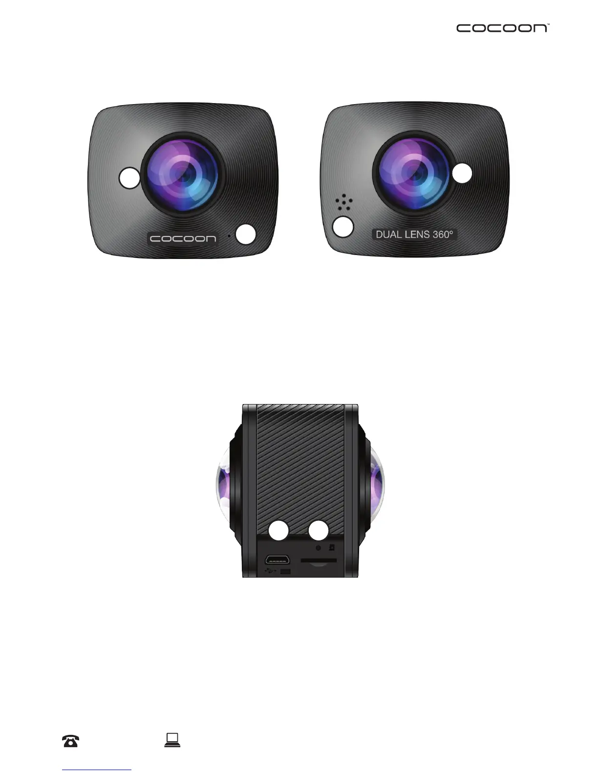 1. Lens 1 2. Microphone 3. Speaker 4. Lens 2