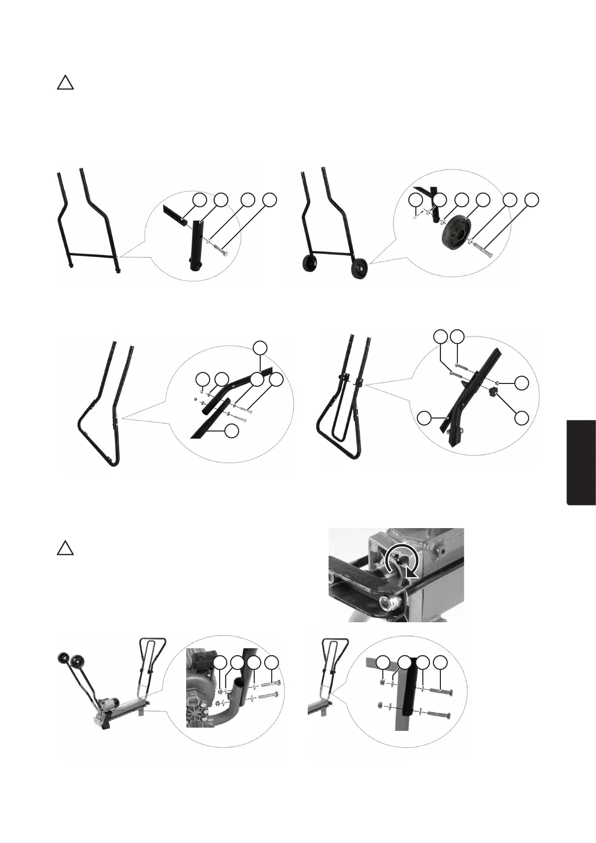 • Zur Montage des Holzspalters stets eine zweite Person heranziehen. Die Montage ist deutlich einfacher